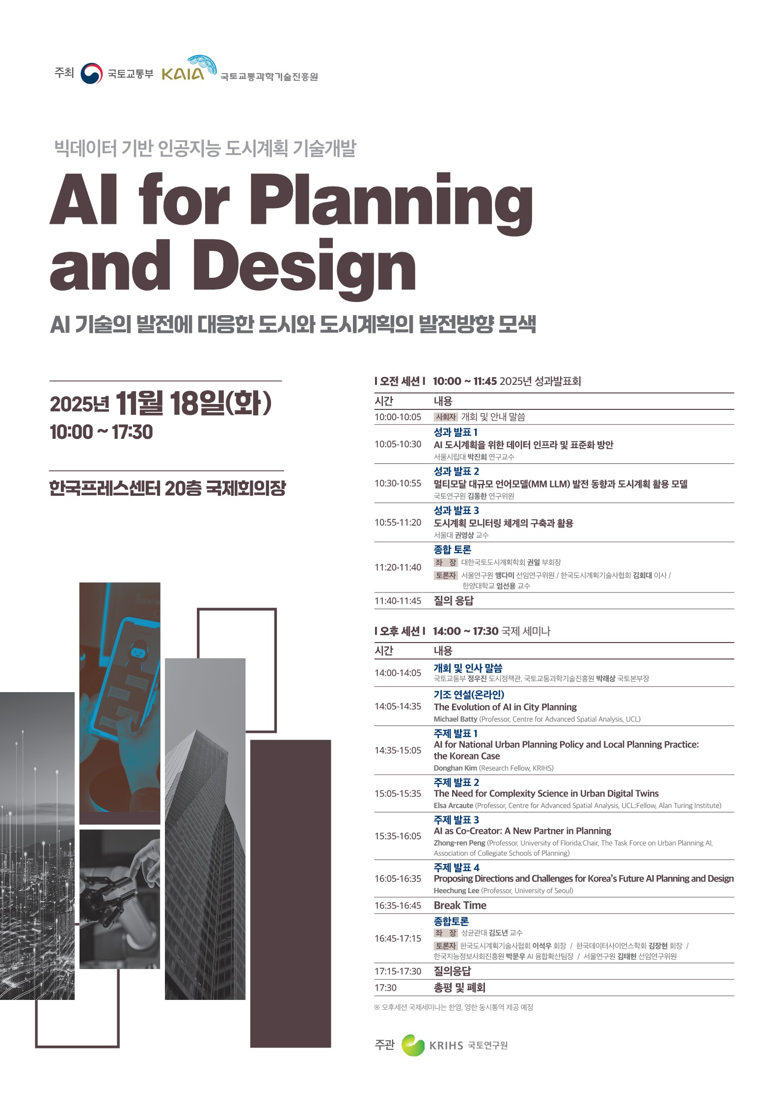 빅데이터 기반 인공지능 도시계획 기술개발 국제세미나 안내