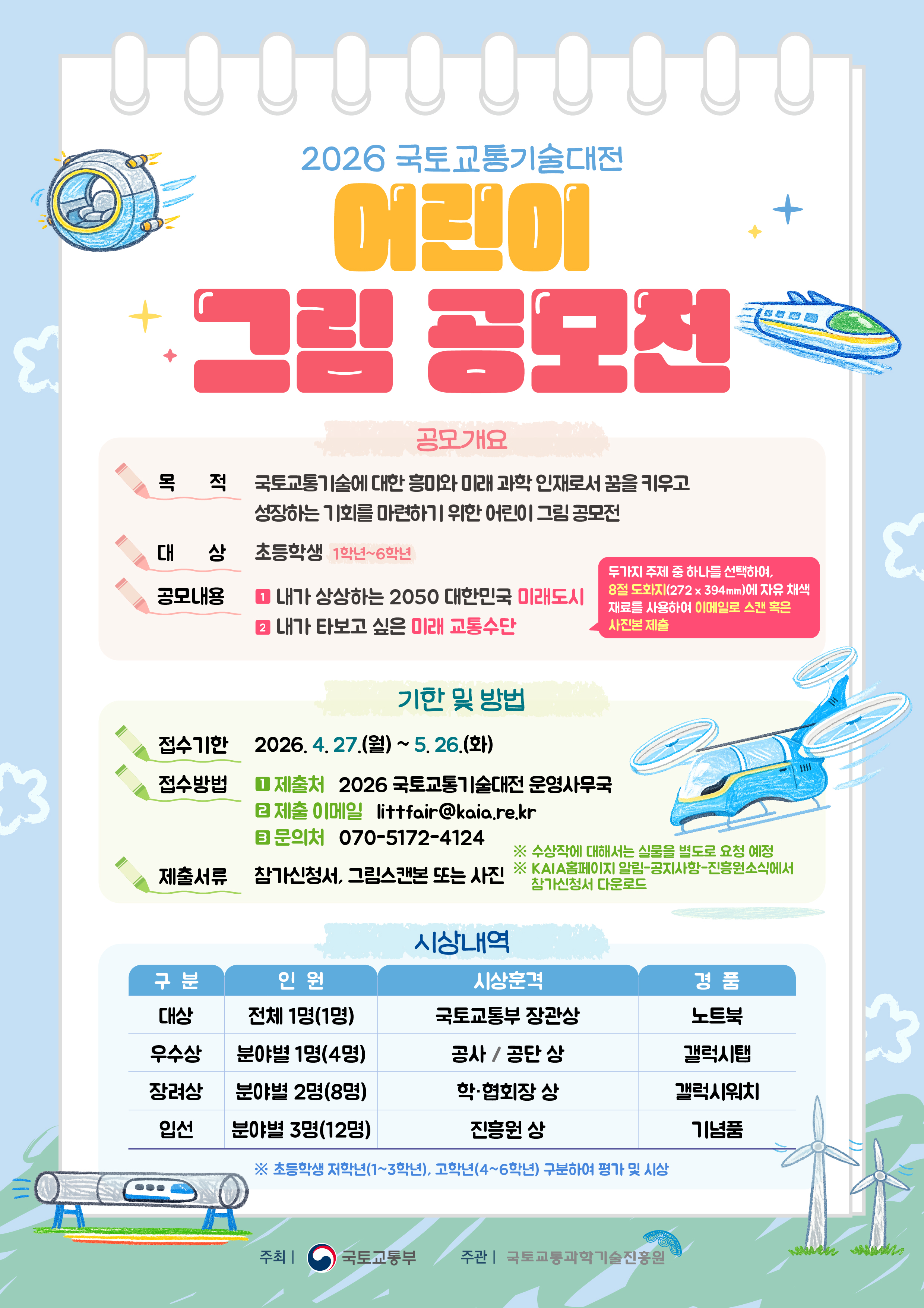 2026 국토교통기술대전 어린이 그림 공모전 개최 안내(~5.26(화))