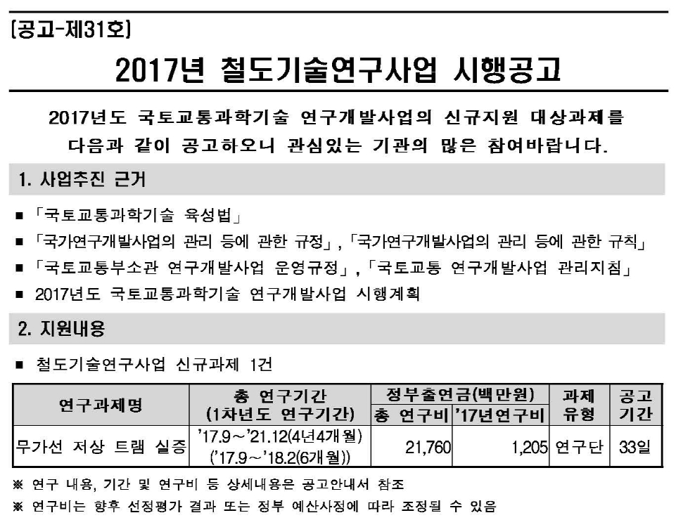 (공고-제31호) 2017년 철도기술연구사업 시행공고