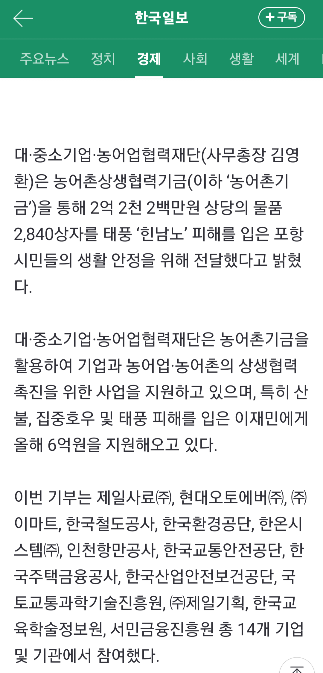 ㅇ 대상 : 태풍피해 및 집중호우로 피해를 입은 이재민 (포항시, 안양시)을 위한 식품꾸러미 전달