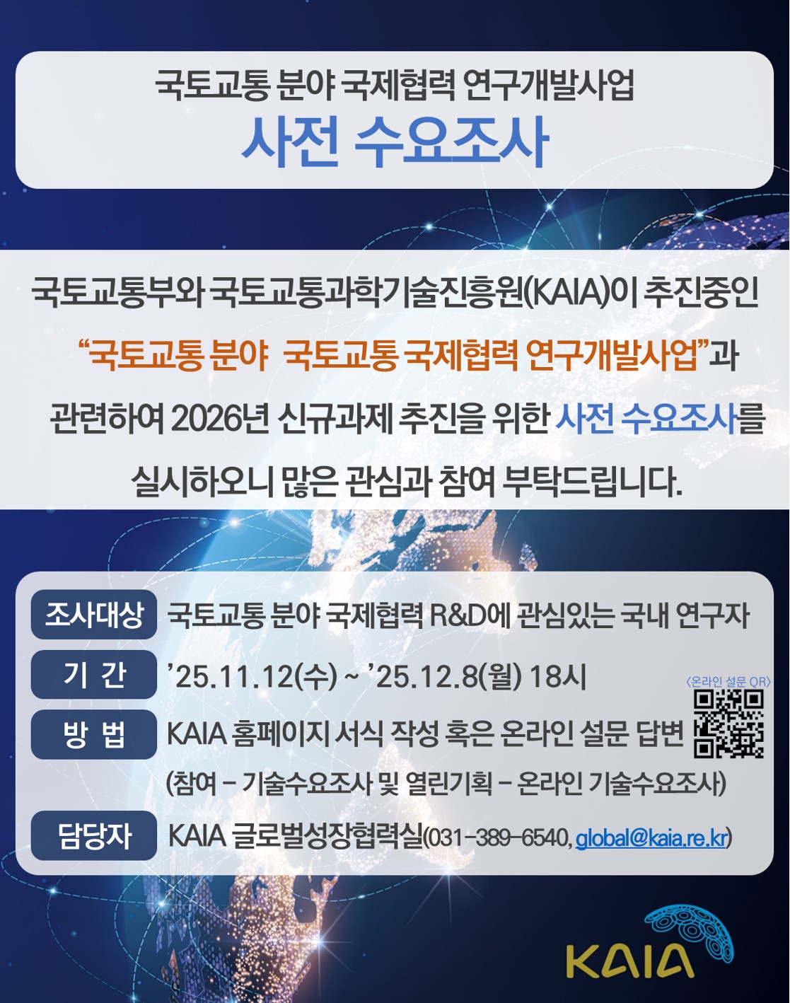 KAIA는 사회적가치를 실현하는 R&D전문기관으로서국민의 안전과 삶의 질 향상을 위해 노력하겠습니다.